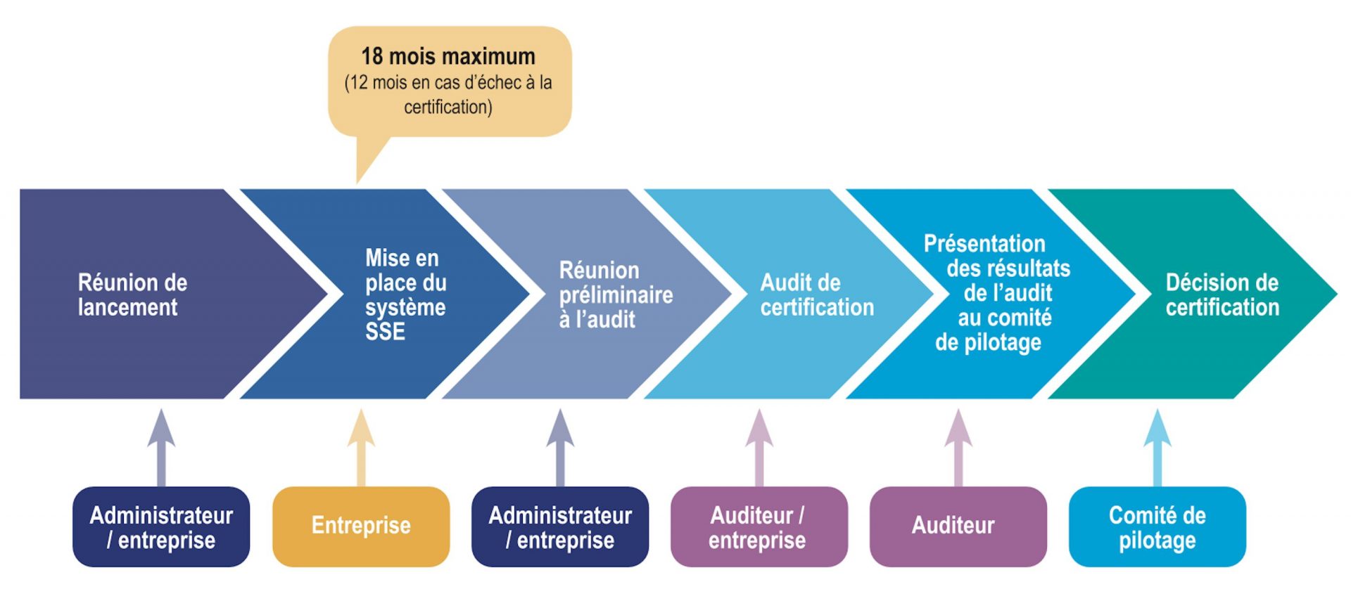 La première étape consiste à adhérer à une association locale MASE. L’entreprise obtient alors le statut « engagée » pour une durée maximale de dix-huit mois. Une réunion de lancement fixe le périmètre et présente le manuel MASE.